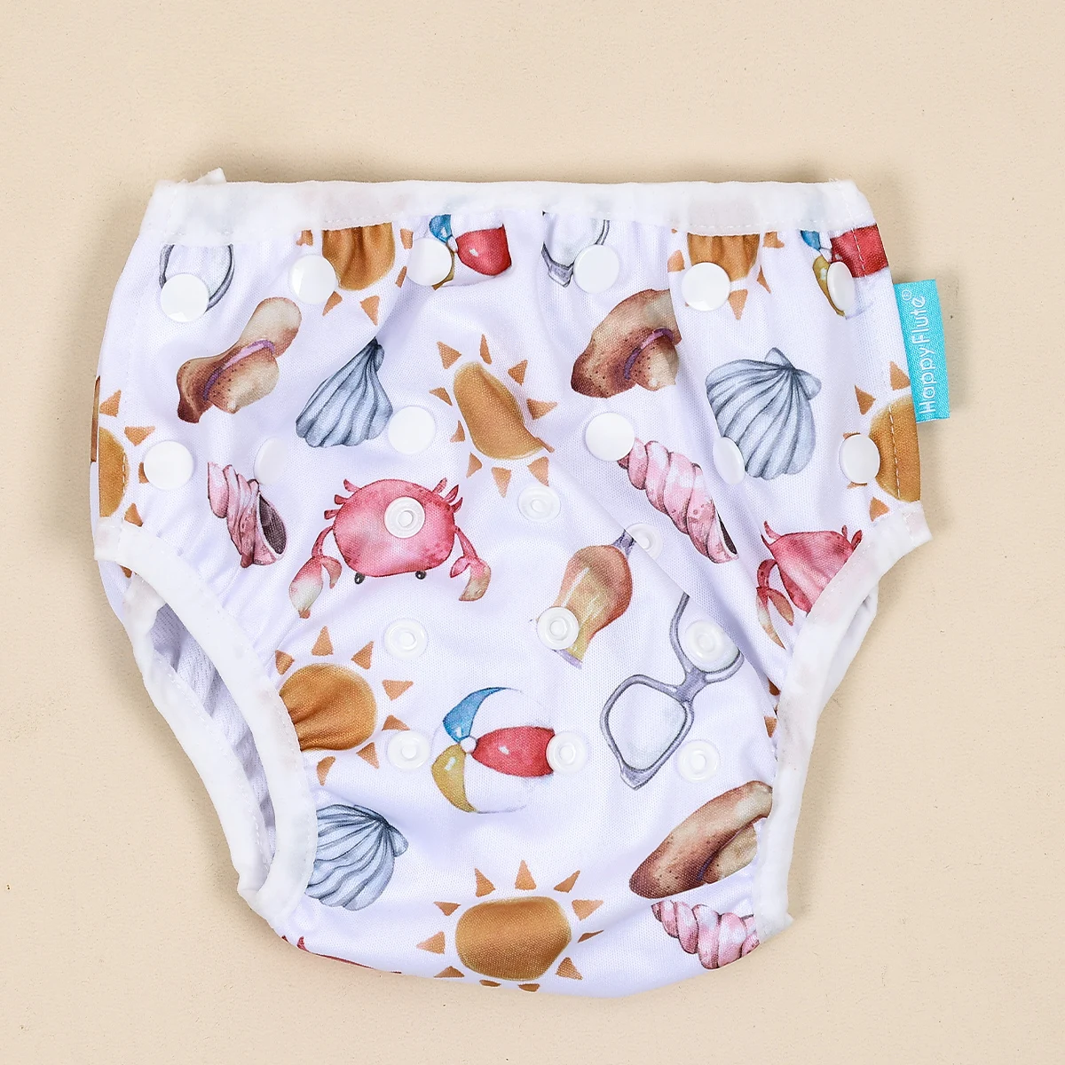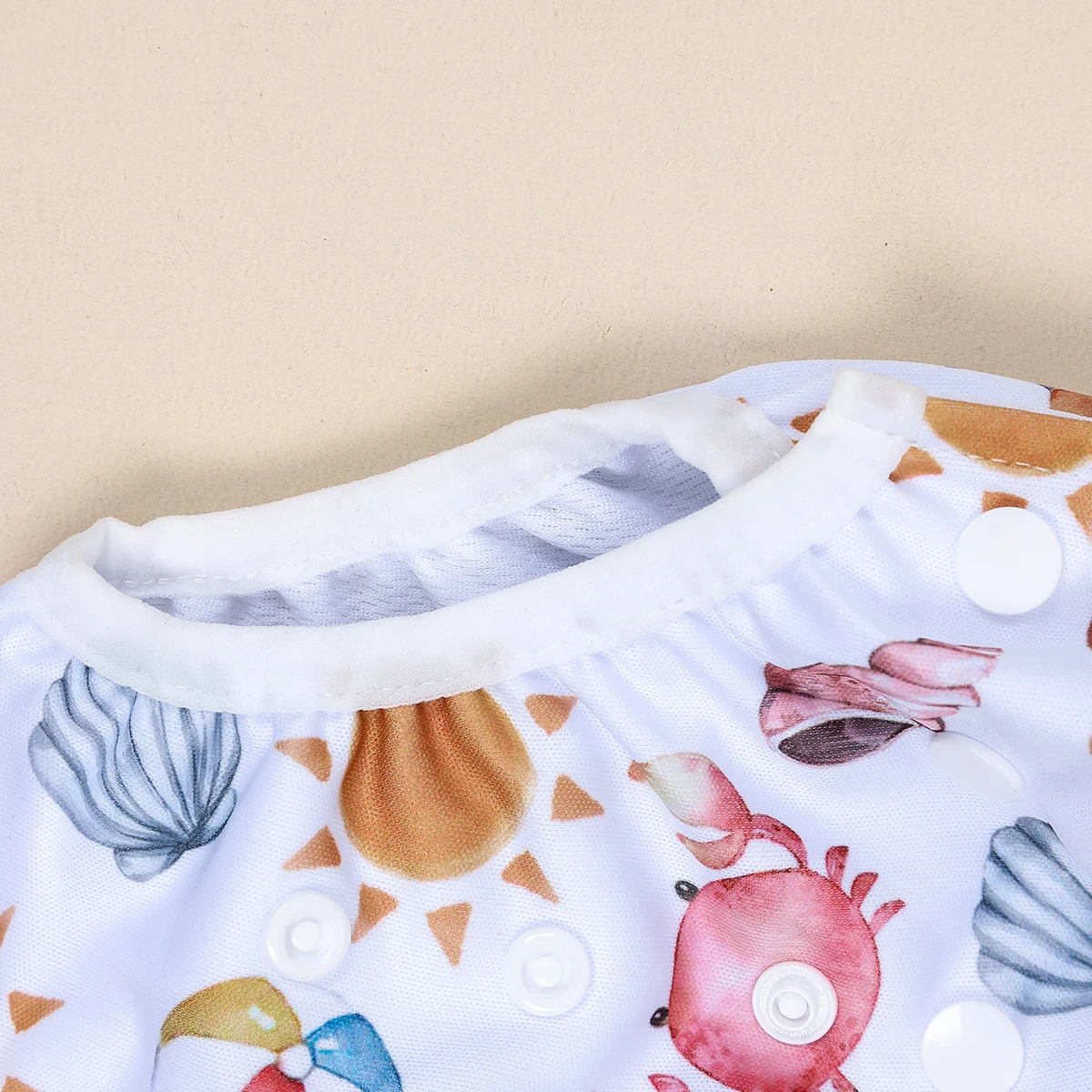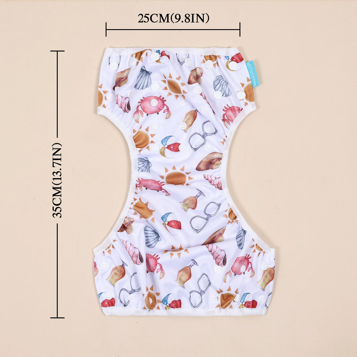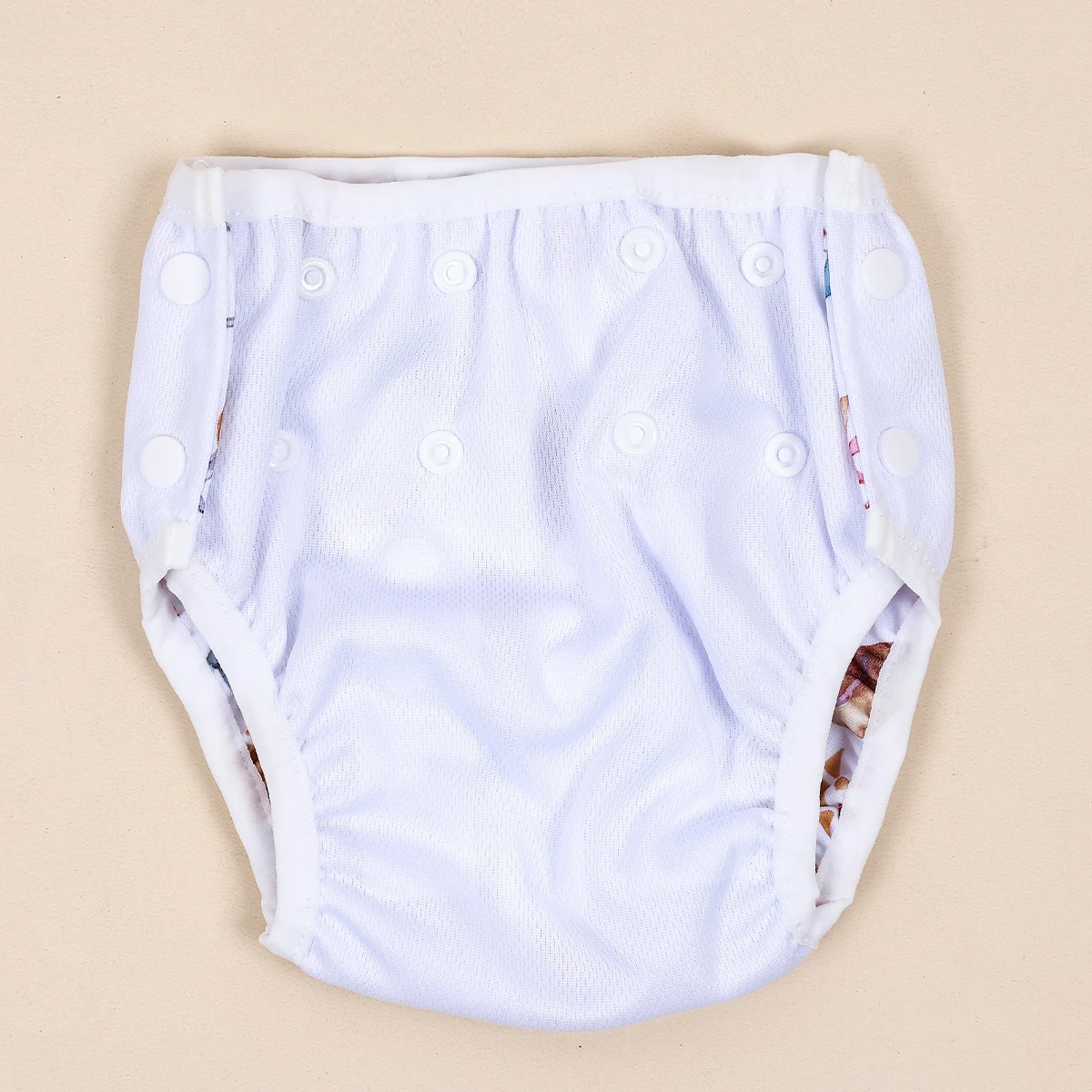 —Double-side (3×2) snap openings on the waist, 3×3 snaps in front of diaper to adjust the size.
